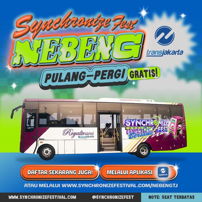Nah buat kamu yang ingin memesan kursi keberangkatan Nebeng Transjakarta, dapat memesan melalui www.synchronizefestival.com/nebengtj.