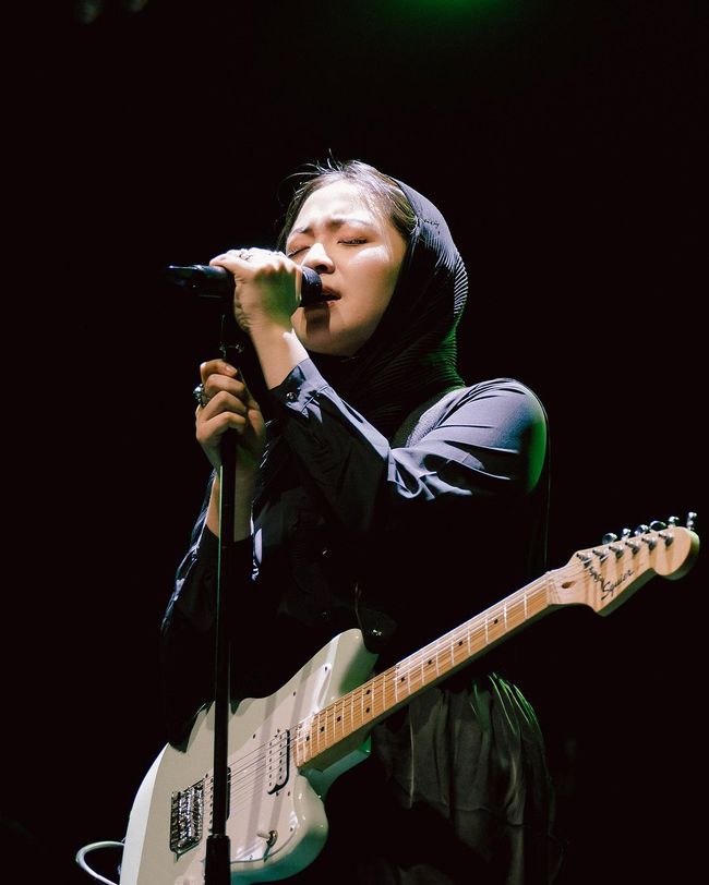 "Pertama kalinya manggung di Banda Aceh, pertama kalinya juga manggung menggunakan penutup kepala. tadi malam hangat sekali," tulis Bernadya di unggahannya.