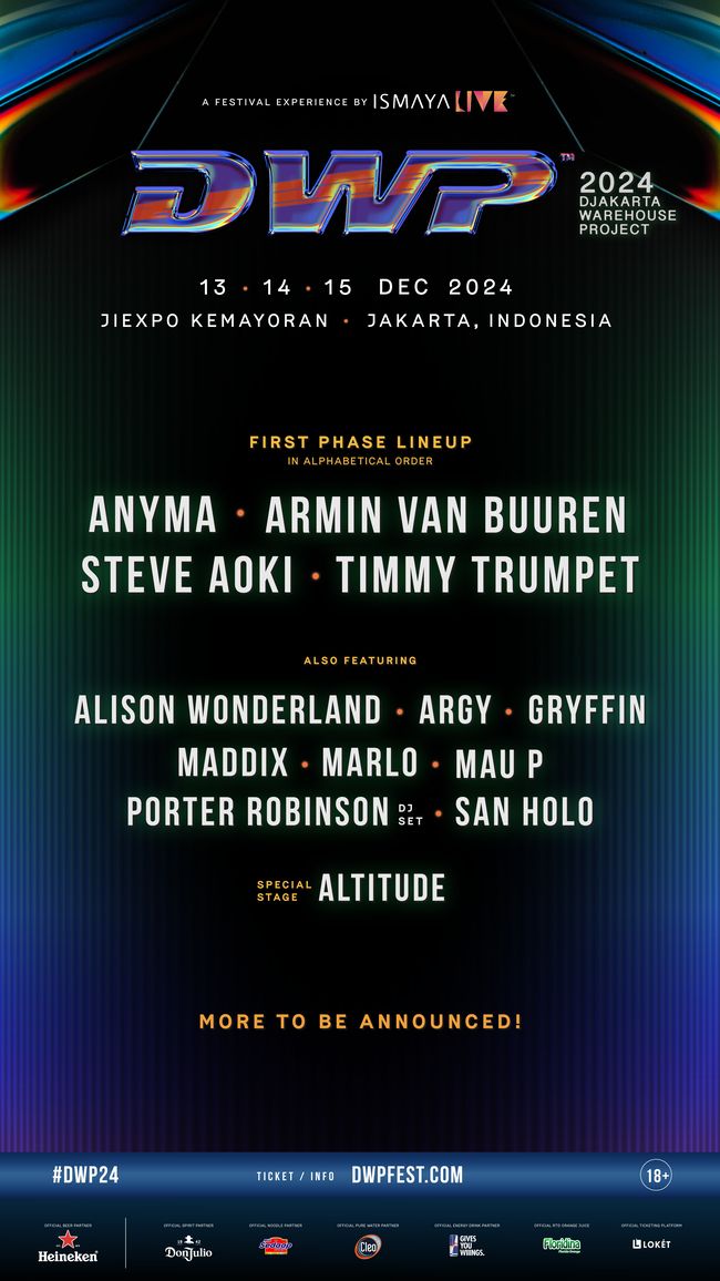Wih, gokil kan guys line up nya. Tapi gak cuma itu aja ya, DWP24 juga mengumumkan nama-nama DJ tanah air dan DJ resident di club dari berbagai negara diantaranya Jepang, Vietnam, Malaysia, Singapura loh. Deretannya ada Adnan Veron x HBRP, Back In The Days, Brett Allen & Hannah X, Chris Phillip, Curzon, Devarra, DJ Sally, Evan Virgan, Gil Glaze, Hathoris, Jidho, Jody MHR, Joybox, Keebo, Kenny Gabriel, Kiara, Kimm, Liquid Silvia, LTN, Matrick, Nathalie, Nikki Frazetta, Pixiee, Ride, Robstee, Six Pratama, Suarapelago, Teddy Doox, Thincut, W.W, Yaksa dan Zippy.
