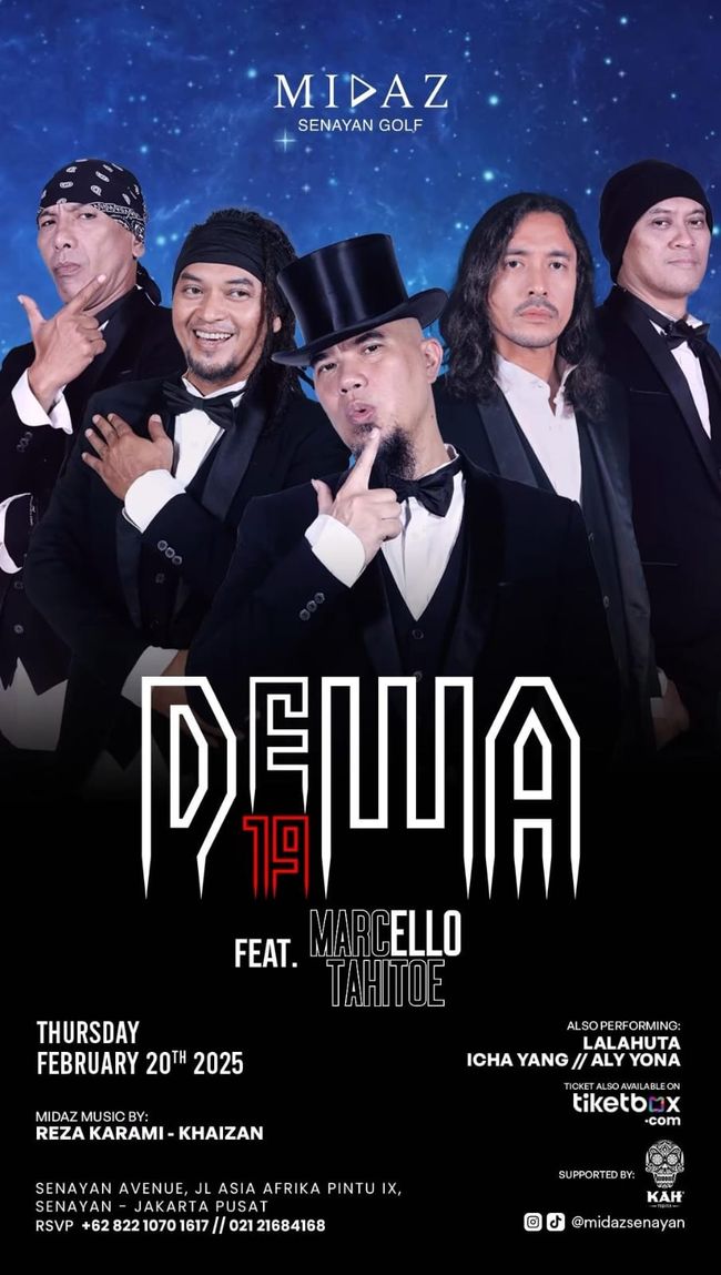 Namun, buat kamu yang mau nonton mereka, gak perlu menunggu lama, karena Dewa 19 bakal hadir di area Senayan. Yup tepatnya Dewa 19 siap untuk menjadi penampil utama di Midaz Senayan Golf, Jakarta Pusat, pada 20 Februari 2025.