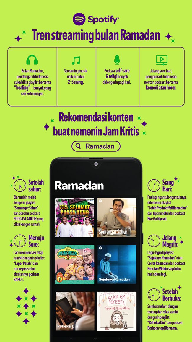 Nah berikut adalah rekomendasi playlist dan podcast di Spotify untuk menemani jam-jam kritis selama Ramadan.