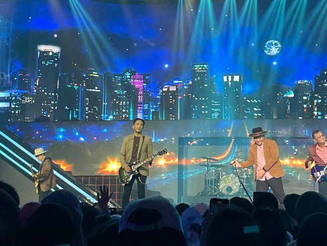 Padi Reborn melantunkan lagu-lagu legendaris mereka, Sabtu (21/6/2025) di Istora Senayan, Jakarta.