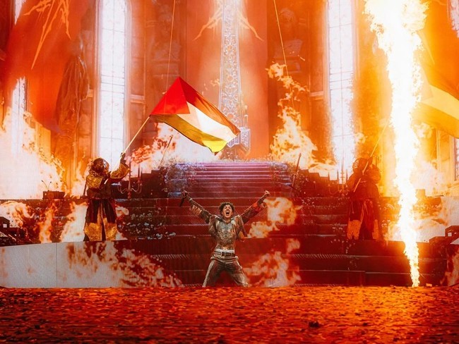 Momen tersebut juga terlihat begitu epik di Instagram BMTH. Bendera Palestina berkibar di antara kobaran api dari fire projector.