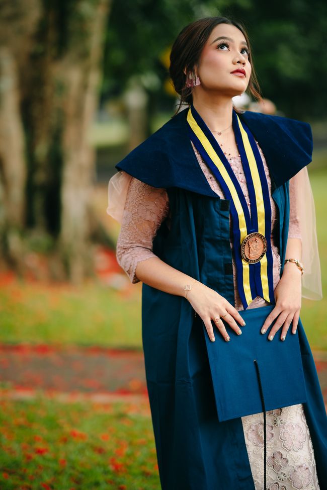 "Aku senang sekali karena ini adalah hari yang aku tunggu-tunggu selama kuliah. Semua perjuangan terbayarkan lunas dan senang sekali juga oficially mendapatkan gelar magna cumlaude," ujarnya penuh rasa haru.