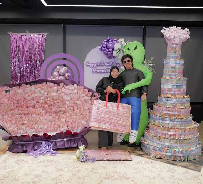 Uang itu dibentuk menjadi buket bunga, tas, hingga kue 12 tingkat. Kabarnya jumlah uang yang diberikan Atta buat kado ke Aurel mencapai Rp 1 miliar. Tapi Atta nggak mau membeberkan pastinya.