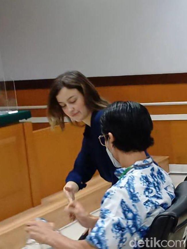 Saat masuk ke dalam ruang sidang, keduanya tampak bersalaman. "Halo," ujar Kimberly sembari tersenyum.