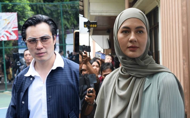Baim Wong hadir lebih dulu di ruang sidang, ditemani pengacaranya Fahmi Bachmid. Sementara Paula Verhoeven kemudian menyusul datang sekitar pukul 11.00WIB mengenakan kacamata hitam, kerudung abu-abu, dan kemeja hijau.