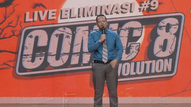 "Sembilan tahun aku jumpscare kalau lihat slip gaji, ada angka 8 itu aku ngeri," katanya di panggung eliminasi Comic 8 Revolution.