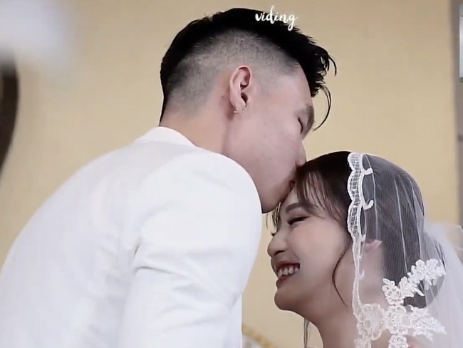 Setelah mengucapkan janji nikah, pasangan itu langsung tertawa lepas di hadapan para tamu undangan.