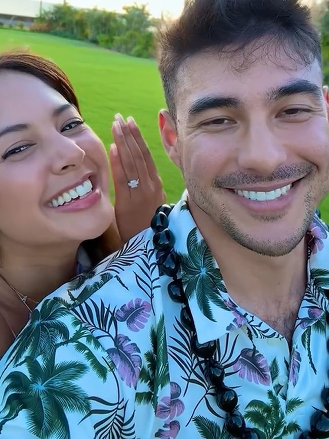 "We're engaged!!!" tulis Aurelie Moeremans dilihat pada Sabtu (21/9/2024).