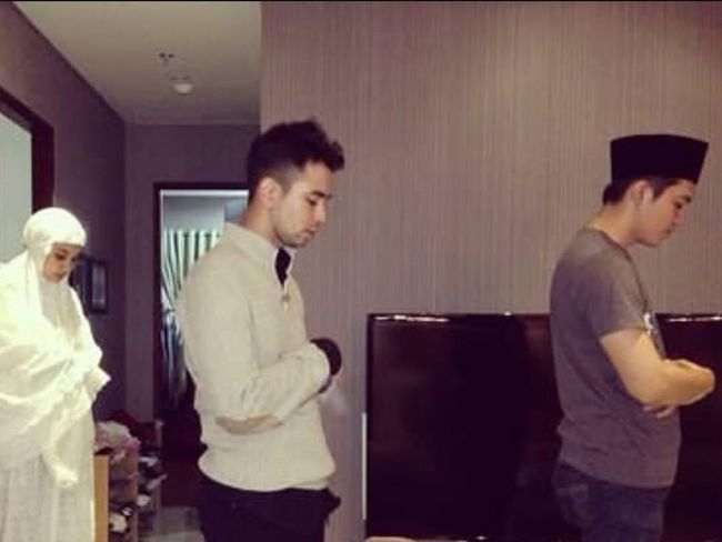 Dalam unggahannya terlihat, Raffi Ahmad dan Irwansyah duduk lesehan di lantai, makan bareng dengan meja kecil. Di foto kedua, mereka bertiga salat berjamaah bareng di apartemen mungil milik Zaskia.