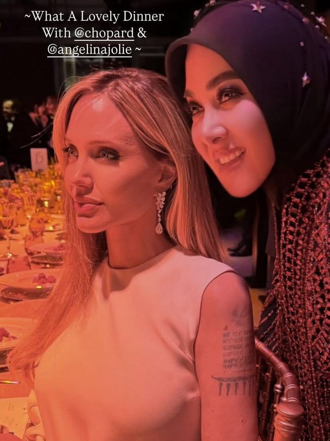 Tapi tunggu dulu, highlight momen Syahrini di Cannes gak cuma soal outfit glamor. Malam sebelumnya, dia dan suami dinner bareng Angelina Jolie!