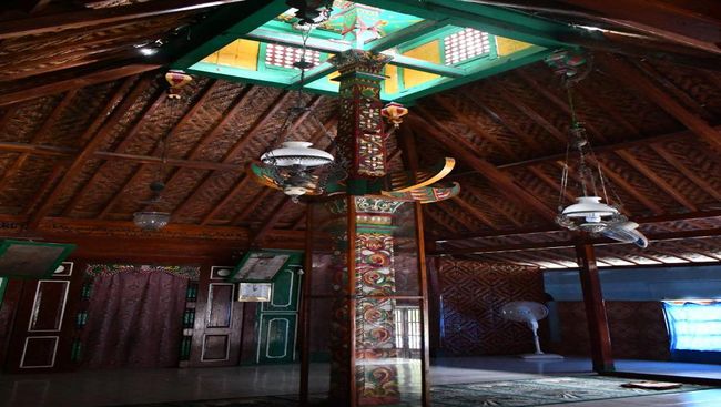 Masjid yang satu ini memiliki daya tarik tersendiri. Jika biasanya ada beberapa tiang penopang pada masjid, di masjid ini hanya ada satu tiang penopang saja.