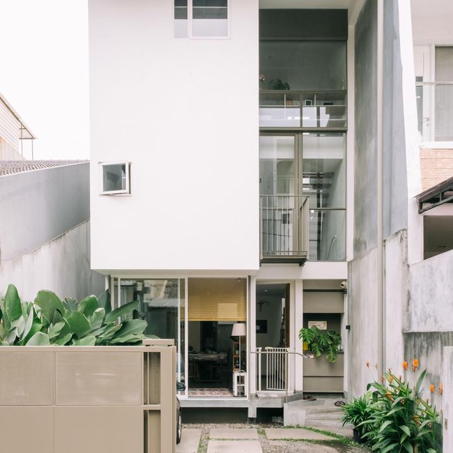 Sang arsitek, Yodi Juliardi merancang rumah bernuansa putih yang tampak minimalis dan estetik. Bangunan rumah ini terdiri dari tiga lantai dengan luas bangunannya 140 m2.