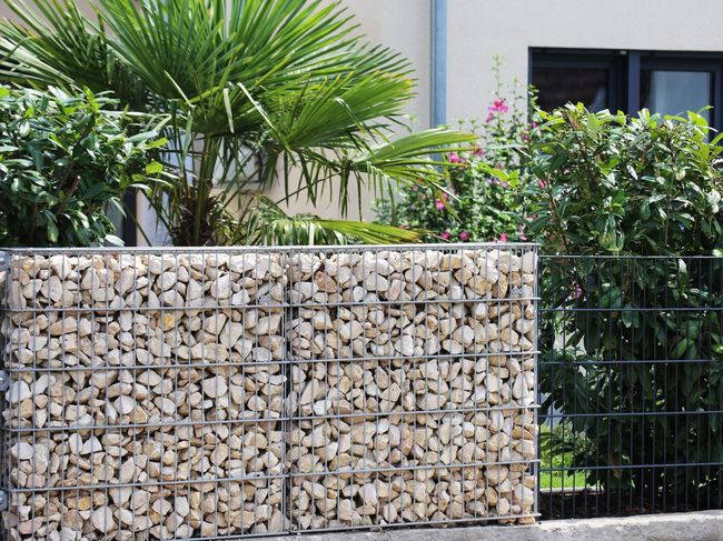 Pagar bronjong juga menjadi pilihan pagar yang sederhana tapi unik, lho. Pagar ini terbuat dari kerangka kawat baja galvanis, lalu di dalamnya berisi tumpukan batu. Bebatuan alam yang digunakan menarik karena menonjolkan desain pedesaan yang berpadu dengan gaya modern.