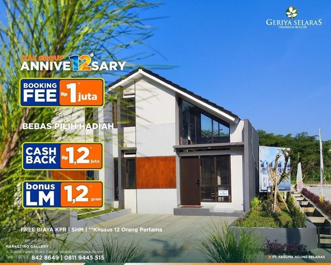 Menyambut HUT ke-12, PT KAS memberikan promo spesial untuk konsumen yang ingin membeli unit rumah, yakni booking fee hanya Rp 1,2 juta, baik di perumahan Graha Selaras, Geriya Selaras Dramaga & Grahalaras Sentul.