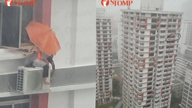 Sebuah aksi yang mengundang keprihatinan terjadi di tengah hujan lebat dan badai petir di Toa Payoh, Singapura. Seorang wanita yang tinggal di lantai 21 sebuah apartemen di Blok 84A Toa Payoh Lorong 2 melihat seseorang duduk di atas kompressor AC tanpa pengaman. Kejadian ini membuatnya cemas mengingat cuaca yang ekstrem pada saat itu.