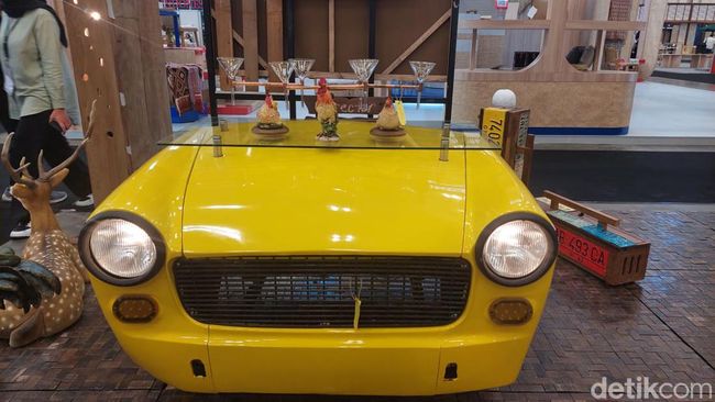 "Konsep besarnya memang recycle jadi memanfaatkan barang-barang yang sudah tidak terpakai, ini (meja) mobil yang warna kuning itu bekas mobil beneran yang sudah rusak dan tidak mungkin untuk dijadikan mobil lagi, nggak bisa jalan, jadi body-nya kita jadikan untuk meja. Yang merah itu dari Mini Cooper, " tuturnya kepada detikcom di ICE BSD, Tangerang, Kamis (14/9/2023).