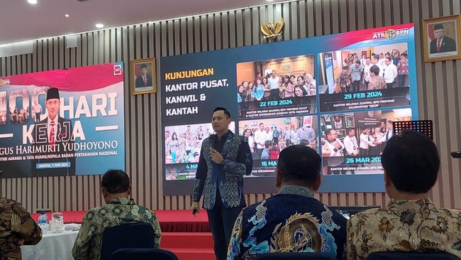 "Dalam 100 hari terakhir berhasil menambah 2,4 juta bidang tanah sehingga hari ini ada 113,3 juta bidang tanah. Mohon doa dan dukungan dari teman-teman sekalian, semoga akhir tahun 2024 ini benar-benar bisa mendapat 120 juta bidanv tanah," ungkapnya dalam acara 100 Hari Kerja di Kantor Kementerian ATR/BPN, Jumat (7/6/2024).