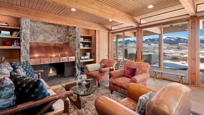 Terlihat dari foto yang ada, ruang tamu dari rumah tersebut dilengkapi dengan perapian mewah serta dinding dan pintu kaca yang mengarah langsung ke pemandangan luar.