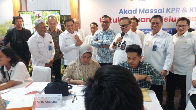 "Yang menarik hari ini di seluruh Indo komposisi perempuan yang melakukan akad 30%, sedangkan komposisi milenial yang akad pada hari ini sebesar 72% dengan umur paling muda melakukan akad hari ini adalah 23 tahun," kata Nixon dalam sambutannya di acara Akad Massal KPR dan KUR BTN untuk Pejuang Keluarga Indonesia, di Pesona Kahuripan 9, Cileungsi, Bogor, Jawa Barat, Rabu (31/7/2024).