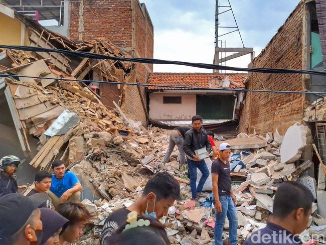 "Saya sempat kejebak di dalam kamar, kan di atas ada loteng. Jadi alhamdulillah nggak ketimpa. Cuma di luar kamar pada rubuh. Dari situ saya dengan ada yang teriak manggil 'Uwa.. Uwa', saya di kasih air mineral sama tetangga yang nolongin," katanya.