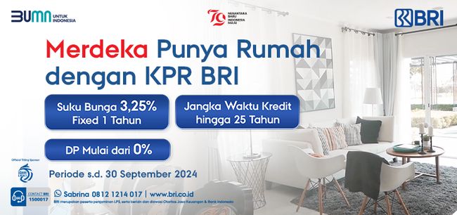 Tidak kalah menarik, 'Merdeka Punya Rumah dengan KPR BRI' juga menawarkan jangka waktu kredit maksimal 25 tahun untuk kamu yang sudah memiliki fix income dan 20 tahun untuk kamu yang masih non fix income. Menarik bukan?