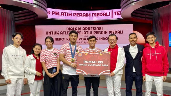 Tiga atlet nasional peraih medali Olimpiade Paris 2024 yakni Veddriq Leonardo, Rizki Juniansyah dan Gregoria Mariska Tunjung mendapatkan sebuah rumah dari pengembang properti, Realestat Indonesia (REI). Ini sebagai bentuk apresiasi atas keberhasilan para atlet.