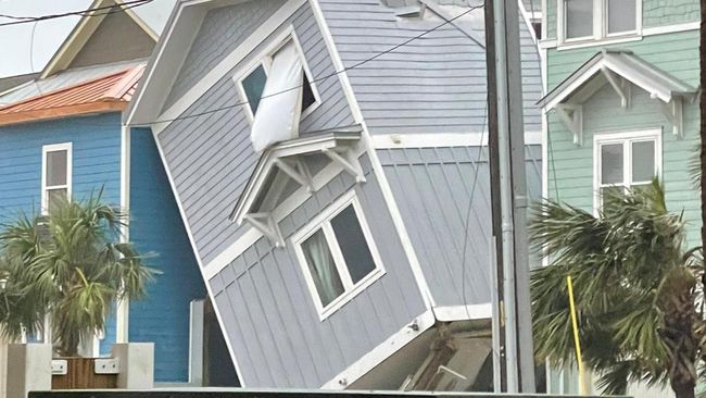 Melansir dari Al.com, Kamis (16/13/2024) rumah pantai Florida itu miring usai diterpa angin topan pada 9 Januari 2024 lalu. Banyak rumah di kawasan ini mengalami kerusakan struktur, termasuk rumah biru tiga lantai ini.