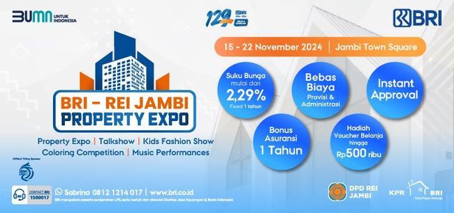 Melihat kondisi itu, PT Bank Rakyat Indonesia (Persero) Tbk atau BRI mengadakan BRI REI Property Expo di Jambi. Tujuan diadakannya event ini adalah untuk memudahkan nasabah maupun calon nasabah BRI dalam proses memilih dan membeli rumah melalui KPR BRI.