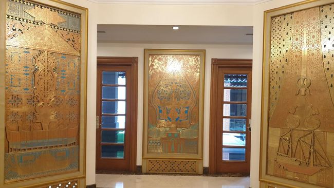 Kekayaan Indonesia digambarkan di tengah plafon dan lantai lobby. Terdapat lingkaran berisi gambar kepulauan dan lautan Indonesia dalam nuansa biru di lantai. Sementara plafonnya gambar ragam flora dan fauna Indonesia dengan nuansa senada. Lobby tersebut disebut Lobby Bhinneka Tunggal Ika.