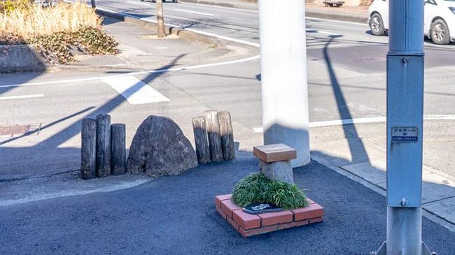 Jika berjalan dari balai kota Nagaizumi ke area permukiman, kamu akan melihat sebuah benda di tengah area kosong. Benda itu sebenarnya taman yang luasnya hanya 0,24 meter persegi.