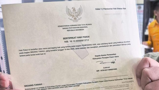 Komitmen pemerataan ekonomi lewat reforma agraria akhirnya mulai terwujud di Ibu Kota Nusantara (IKN). Tepat 20 Mei kemarin, empat sertifikat hak pakai resmi diterbitkan untuk warga di atas lahan milik Badan Bank Tanah (BBT).