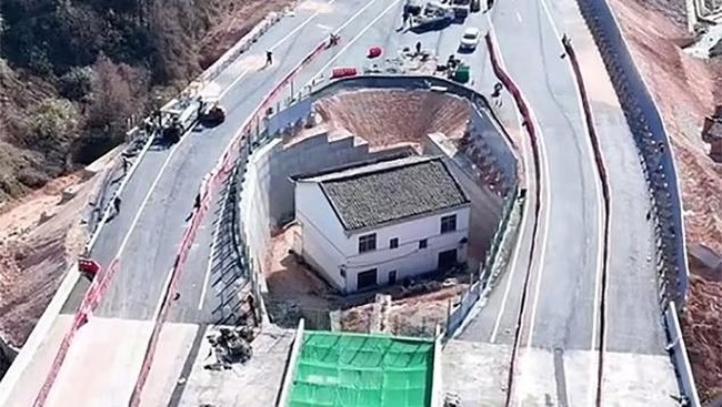 Dilansir dari Independent, jalan tol tersebut dibangun sejajar dengan atap rumah. Alhasil rumah Huang Ping tampak seperti masuk ke dalam lubang bila dilihat dari atas.