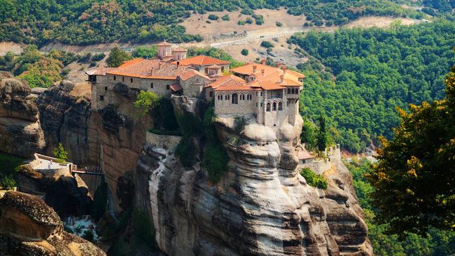 Menentukan lokasi yang aman dan strategis biasanya menjadi pertimbangan ketika membuat bangunan. Namun, beda cerita dengan biarawan-biarawan di Yunani ini, mereka justru memilih hidup di atas bebatuan tinggi dan terjal.
