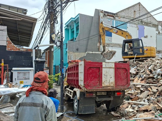 Dari pantauan detikProperti di lokasi, Jumat (14/11/2025) siang, terlihat ada dua ekskavator yang tengah mengeruk puing-puing bangunan rumah Sahroni. Ada juga tiga dump truck yang hilir mudik mengangkut puing-puing bangunan.