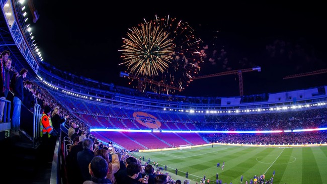 Menjelang laga dimulai, kembang api dinyalakan untuk menyambut para pemain yang masuk ke lapangan. Lampu stadion langsung berubah warna menjadi biru kemerahan, melambangkan warna klub Barcelona.