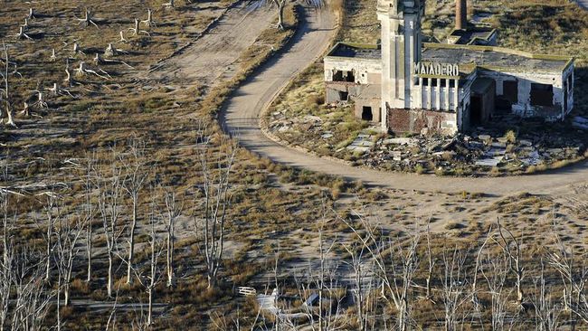 1. Villa Epecuén, Argentina Dilansir dari The Financial Express, villa Epecuén sempat menjadi kota wisata yang berkembang pesat, namun pada 1985 terjadi banjir dahsyat yang memakan banyak korban. Setelah air surut, muncul sebuah rumah dari reruntuhan yang ada.Foto: Rumah terpencil/Dok Financial Express