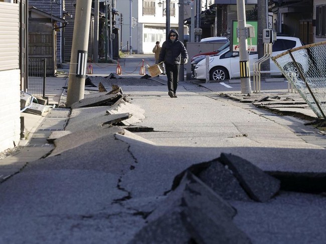 Jalanan Rusak-Rumah Hancur Dihantam Gempa Jepang