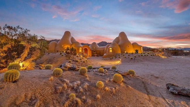 Rumah Hobbit seperti di Film Lord of the Ring sekarang bisa ditemui di Taman Nasional Joshua Tree di California. Rumah ini bernama Bonita Domes berbentuk kubah besar dan kecil dengan luas 1.339 kaki persegi. Di dalamnya terdapat dapur, ruang tamu, 2 kamar tidur, dan 2 kamar mandi. Foto: Coldwell Banker Realty via loveproperty.com