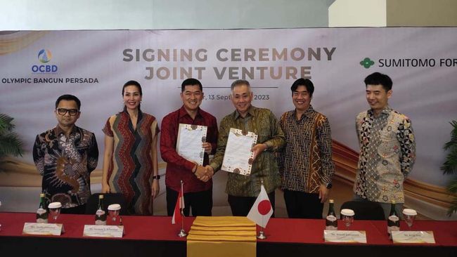 Kolaborasi ini ditandai dengan penandatanganan MoU antara CEO PT Olympic Bangun Persada Norman Edward Sebastian, dan Senior Managing Executive Officer Sumitomo Forestry Co. Ltd. Atsushi Kawamura.