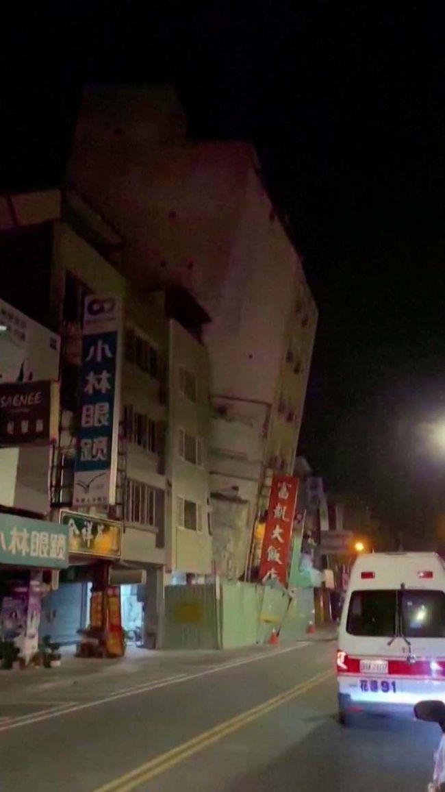 Taiwan - Gempa berkekuatan magnitudo (M) 6,0 terjadi di Taiwan. Bangunan hotel ini pun miring.