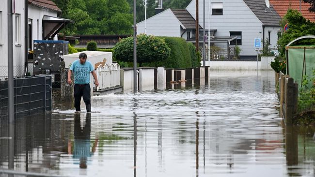 Jerman - Hujan lebat beberapa hari terakhir telah menyebabkan banjir besar di Jerman. Ribuan orang terpaksa meninggalkan rumah mereka akibat banjir.