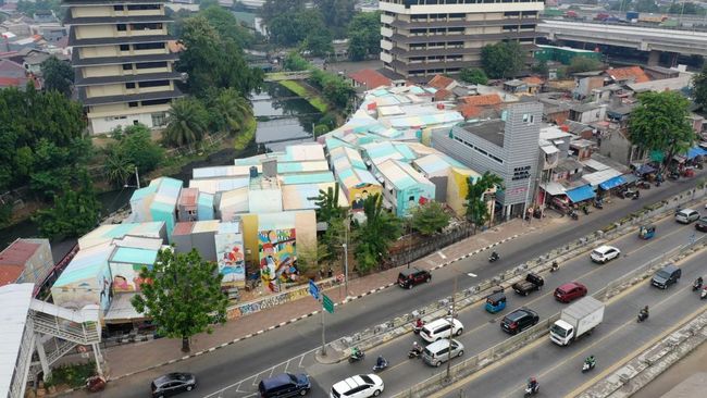 Jakarta - Sebuah kampung warna-warni menghiasi Jakarta Timur. Permukiman yang dinamakan Kampung Gembira Gembrong ini hasil revitalisasi akibat kebakaran pada April 2022.