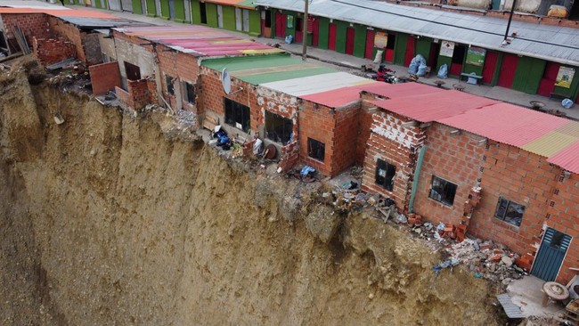 Bolivia - Deretan rumah ini dibangun di tepi jurang setinggi 200 kaki di El Alto, Bolivia. Rumah para dukun Aymara itu dikenal sebagai 'rumah bunuh diri'.