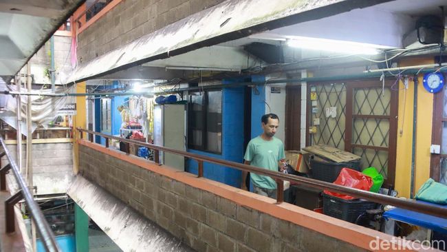 Warga beraktivitas di Rumah Susun (Rusun) Bidara Cina, Jakarta, Jumat (1/8/2025). Rusun itu kondisinya memprihatinkan.