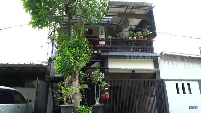 Inilah penampakan depan rumah Azis Gagap yang bernuansa hitam. Rumah ini dihias dengan banyak pot tanaman serta pohon yang memberi kesan asri. Foto: Tangkapan Layar YouTube TRANS7 OFFICIAL