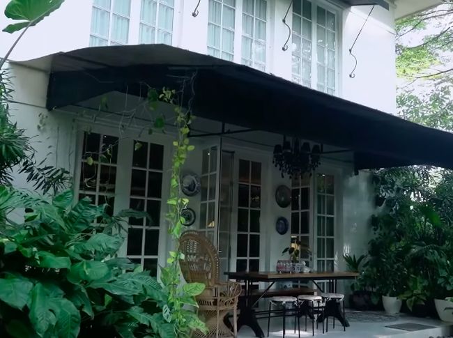 Yuni Shara menyebut arsitektur rumahnya adalah american modern. Jika melihat tampilan fasadnya, rumah Yuni Shara mirip dengan pintu masuk café vintage. Foto: YouTube Melaney Ricardo