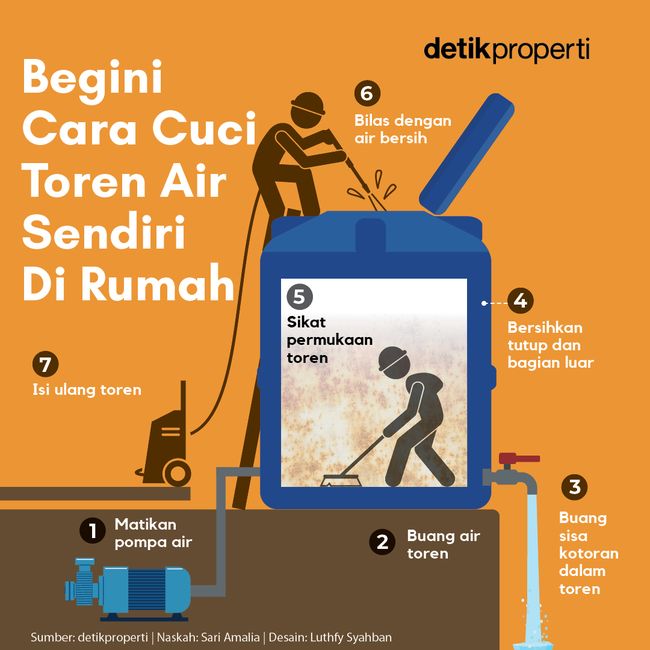 Untuk mengetahui cara mencuci toren air, detikProperti telah merangkum langkah yang harus dilakukan. Simak infografis berikut ini!