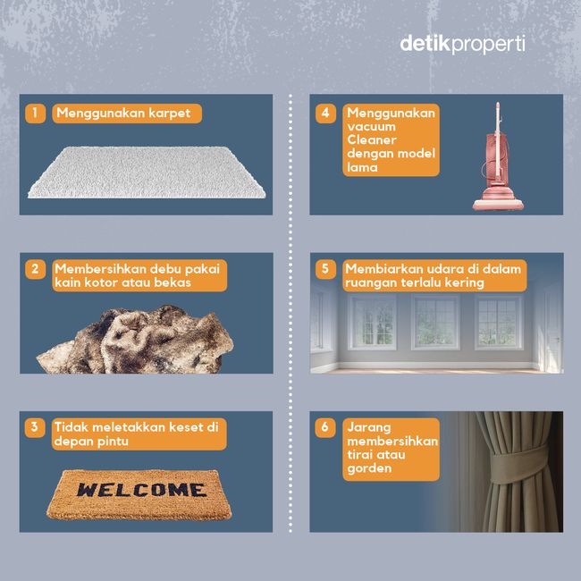 Jakarta - Debu pada rumah tak hanya membuat ruangan jadi kotor, ternyata juga berbahaya bagi kesehatan. Terutama, bagi kamu yang punya alergi debu dan asma.